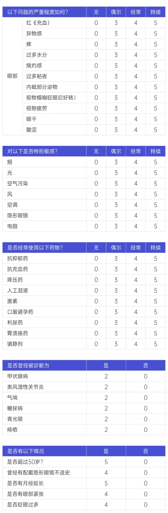 春節(jié)假期過后,開工啦,早上醒來,還沒睜開眼,手先去摸手機(jī),想看看幾點(diǎn)了。結(jié)果想要睜開的時候,發(fā)現(xiàn)眼睛感覺特別干,特別磨。這是怎么回事呢?白天當(dāng)眼睛不舒服時,我們會不自覺不停眨眼,這樣會使淚腺分泌的淚液和瞼板腺分泌的油脂組成的淚膜持續(xù)地涂抹到眼表,通過滋潤角膜來緩解不適感。但人在睡眠過程中,分泌淚液的淚腺“休息”了,滋潤角膜的效果也就不那么明顯了。同時,當(dāng)你醒來時,淚腺才開始蘇醒,還沒開始正常工作(它一般要人蘇醒后20分鐘才開始正常工作),分泌的淚液是非常少的!所以說,在剛醒來時眼睛會覺得干。在干眼癥患者的身上,表現(xiàn)更加明顯。國外一項(xiàng)研究也有表明,人在剛起床時,淚液分泌在全天中是最低的,淚膜穩(wěn)定性也是最差的。而且,這個時候人對痛覺的感受也是最明顯的。除此之外,還有一種情況,如有些人在睡覺的時候,眼睛其實(shí)并沒有完全閉上,留著一條縫,所以淚液就更容易蒸發(fā),早上起來,眼睛會更干。長期佩戴隱形眼鏡、或曾經(jīng)做過雙眼皮手術(shù)的人,更容易出現(xiàn)這種情況。所以,我們更要學(xué)會正確眨眼。咸陽愛爾眼科醫(yī)院眼整形與干眼科主任陳小瑾醫(yī)生給大家2條小建議:1、早上醒來(不超過5分鐘),就給自己點(diǎn)一滴人工淚液(遵醫(yī)囑選擇人工淚液);2、對于存在睡覺雙眼閉不上的干眼朋友,建議睡前使用高粘度的人工淚液,或戴上眼罩。劃重點(diǎn):春節(jié)期間大家大量的使用手機(jī)、電腦等電子產(chǎn)品導(dǎo)致的干眼人越來越多,很多朋友會到藥店自行選擇購買滴眼液治療,點(diǎn)了人工淚液咋越點(diǎn)越干,可如果持續(xù)點(diǎn)才舒服一些。這是典型的使用大量人工淚液導(dǎo)致的干眼,也稱滴眼液相關(guān)性干眼。不合理使用眼藥水會讓眼睛越來越糟糕。如果您懷疑自己是不是干眼,這里有一個評分測試表,可以對自己的干眼狀況做一個初步的評估。對表中的問題,選擇最接近的答案并記錄加和,如果測試總分超過30分,則表示有干眼的可能,請及時找眼科醫(yī)生就診。