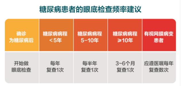糖尿病患者除了根據(jù)醫(yī)生的指導(dǎo)控制好血糖、血壓、血脂以外,也要定期做好眼底檢查(一般為半年一次或一年一次,可遵醫(yī)囑依實(shí)際情況決定),隨時(shí)監(jiān)測(cè)眼底情況,一旦發(fā)現(xiàn)病變盡及時(shí)就醫(yī),盡可能地控制致盲風(fēng)險(xiǎn)。