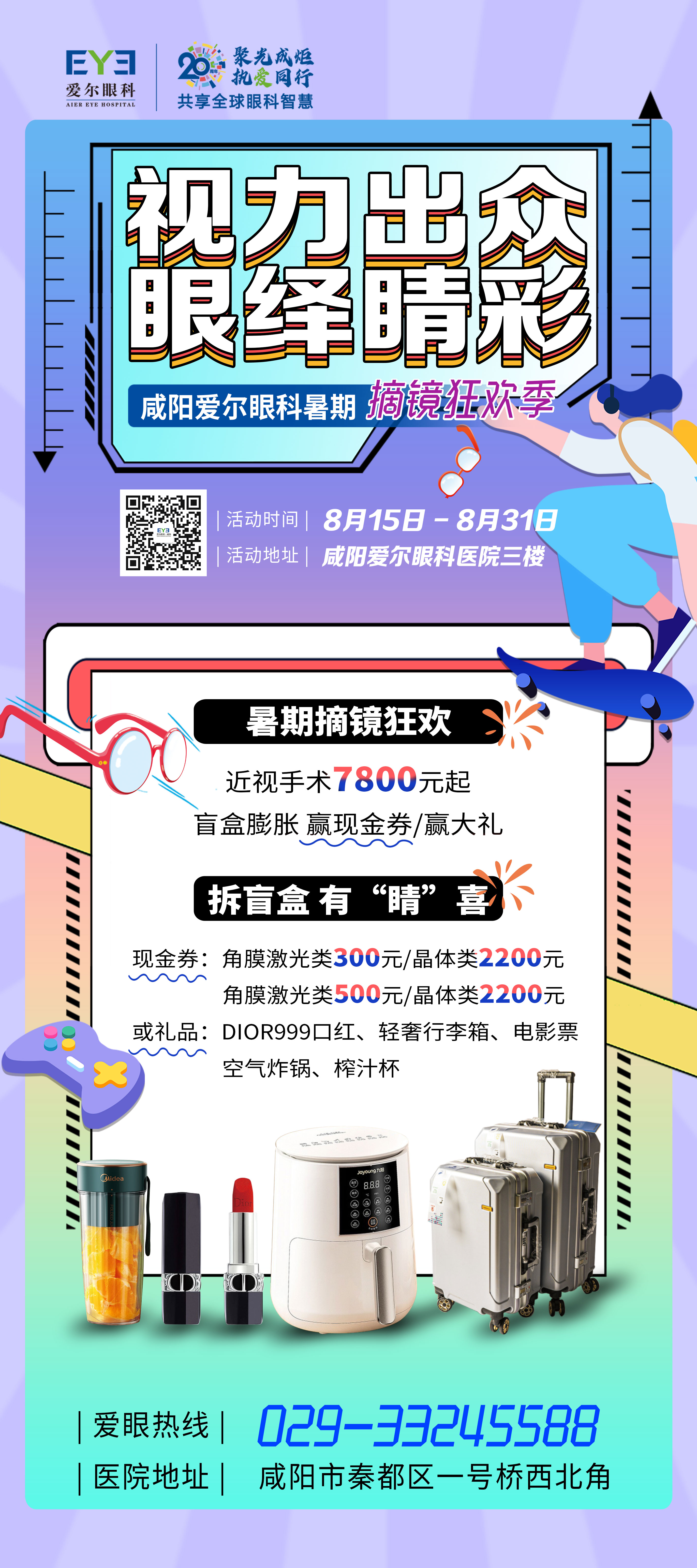 8月15日至8月31日,只要選擇在咸陽(yáng)愛(ài)爾眼科醫(yī)院摘鏡,