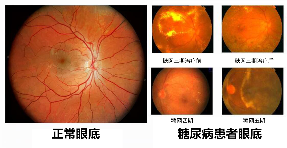 11月14日,是第16個(gè)“聯(lián)合國(guó)糖尿病日”,糖尿病一直是老年群體中的高發(fā)疾病,然而不少糖尿病患者到醫(yī)院檢查時(shí),明明去的內(nèi)分泌科,醫(yī)生卻會(huì)提醒要去看看眼睛。讓人不禁納悶:跨度有這么大嗎?糖尿病并發(fā)癥都能發(fā)展到眼睛了?其實(shí),“叫糖尿病患者看眼科”并不是危言聳聽(tīng),而是非常善意的提醒,糖尿病會(huì)引起眼睛里的血管的損傷,導(dǎo)致視網(wǎng)膜微血管滲漏和阻塞從而引起一系列的眼底病變,甚至對(duì)眼底視網(wǎng)膜造成嚴(yán)重破壞,如放任其發(fā)展,患者將因此失明。這就是常見(jiàn)的糖尿病慢性并發(fā)癥之一——糖尿病視網(wǎng)膜病變。(以下簡(jiǎn)稱“糖網(wǎng)”)。? ? ? ? ? ? ? ? ? ? ? ? ? ? ? ? ? ? ? ? ? ? ? ? ? ? ? ? ? ? ? ? ? ? ? ? ? ? ? ? ? ? ? ? ? ? ? ? ? ? ? ?視網(wǎng)膜病變表現(xiàn)由于糖尿病患者基數(shù)巨大,它已成為當(dāng)今導(dǎo)致成人失明的主要原因之一。據(jù)國(guó)際糖尿病聯(lián)合會(huì)(IDF)公布數(shù)據(jù)顯示,2021年我國(guó)糖尿病患者(20-79歲)數(shù)量已高達(dá)1.4億人,位居全球首位。與此同時(shí),大約每2.5個(gè)糖尿病患者中就有1名糖網(wǎng)患者[1]。糖網(wǎng)嚴(yán)重威脅著糖尿病患者的生存及生活質(zhì)量,也給社會(huì)帶來(lái)了嚴(yán)重的經(jīng)濟(jì)負(fù)擔(dān)。